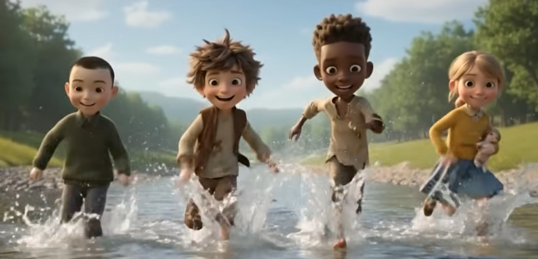 استطاع صانع الفيلم أن يوظف عناصر الشكل بطريقة جمالية وأساسية في انتاجها للمعاني الكامنة وراء هذه العناصر، فتوليد المشاهد واللقطات داخل الفيلم عن طريق الذكاء الاصطناعي مكّن صانع الفيلم من انشاء بيئة خيالية و حلمية غير موجودة على أرض الواق، إلا أنه عند رؤية المتلقي لها يستطيع أن يدرك معانيها العميقة وأن يربطها و يعكسها على الواقع المرير، فاستخدم صانع الفيلم الألوان الدافئة ذات التشبع العالي في مشاهد الغابة السحرية ولعب الأطفال بحرية وأمان.