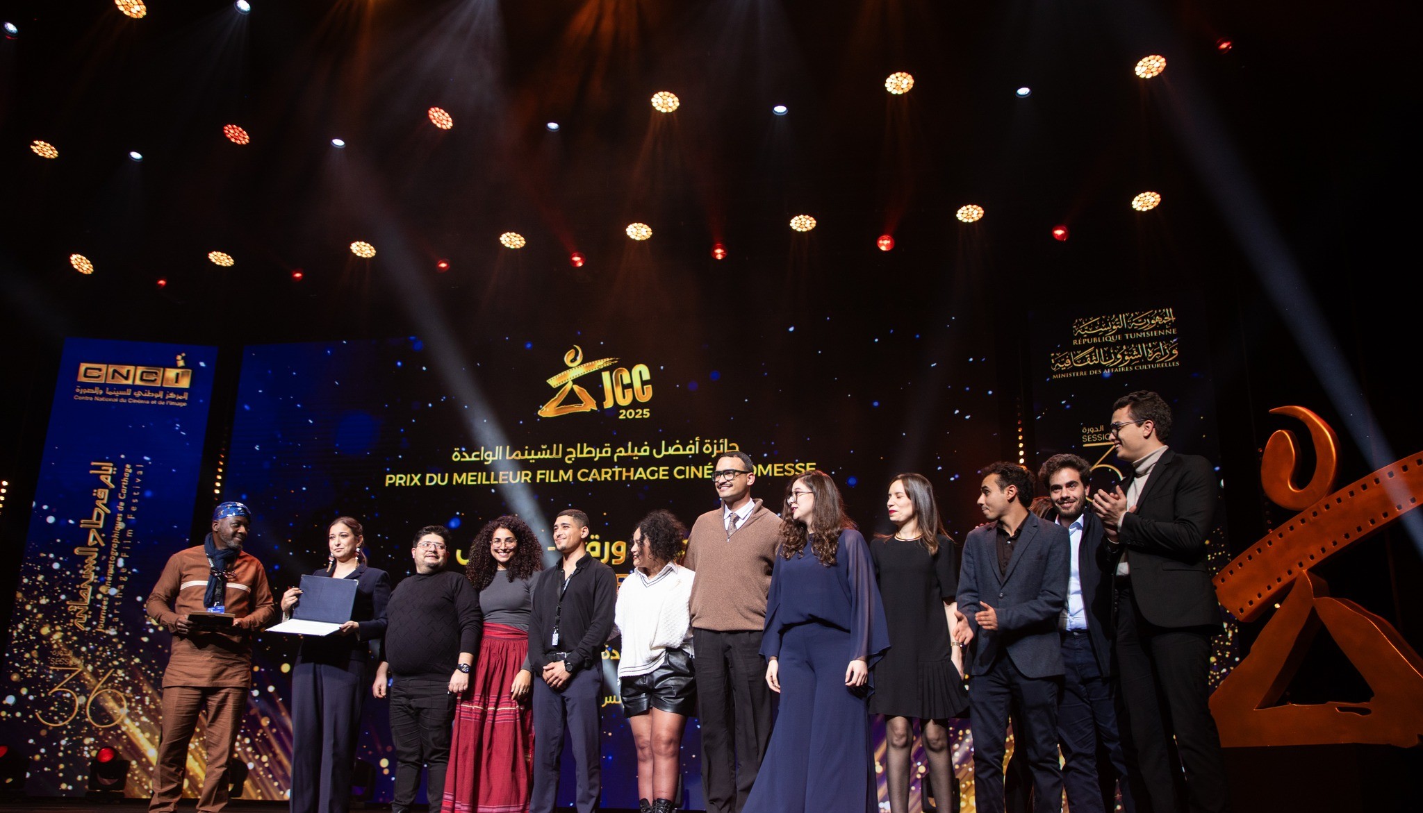 وذهبت جائزة الجمهور إلى فيلم “وين يأخذنا الريح” للمخرجة امال القلاتي، أما في المسابقة الرسمية للأفلام الوثائقية الطويلة، فذهبت جائزة التانيت الذهبي إلى فيلم “تعلق” للمخرج مامادو غوما غييه، وجائزة التانيت الفضي لفيلم “الأسود على نهر دجلة” للمخرج زردشت احمد.